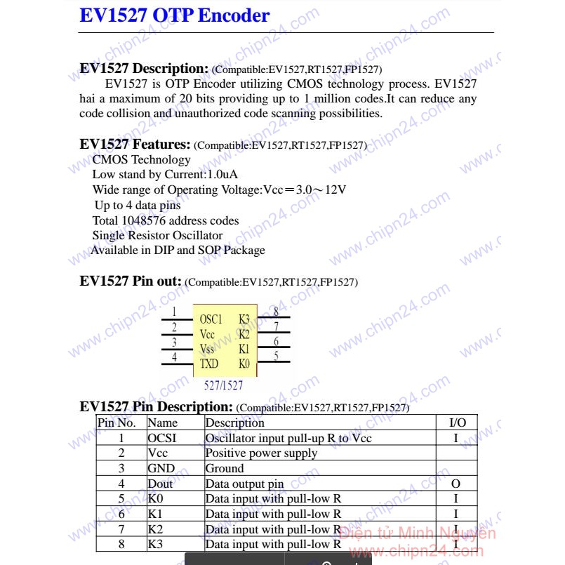 Giới thiệu [3 CON] IC EV1527 SOP-8 (SMD Dán) (1527 OTP Encoder)