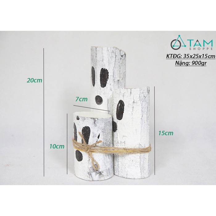 Bộ 3 con ma thân cây tự nhiên sơn trắng