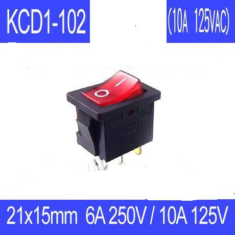 Giới thiệu Bộ 3 công tắc bật KCD1-102 15*21MM 3 chân 6A/250V có đèn