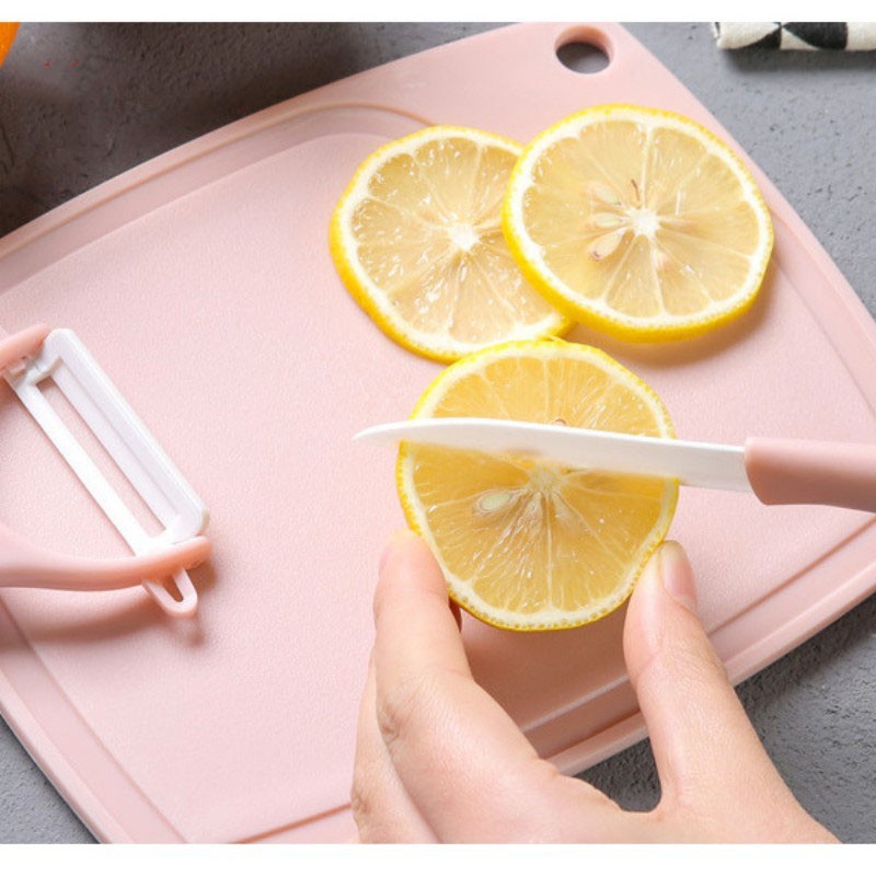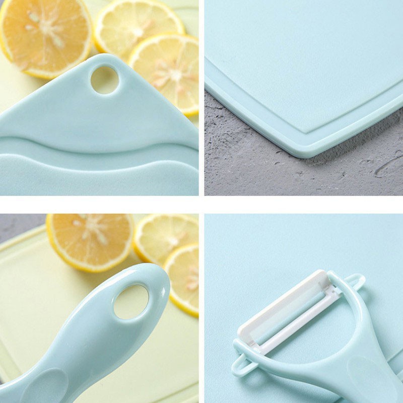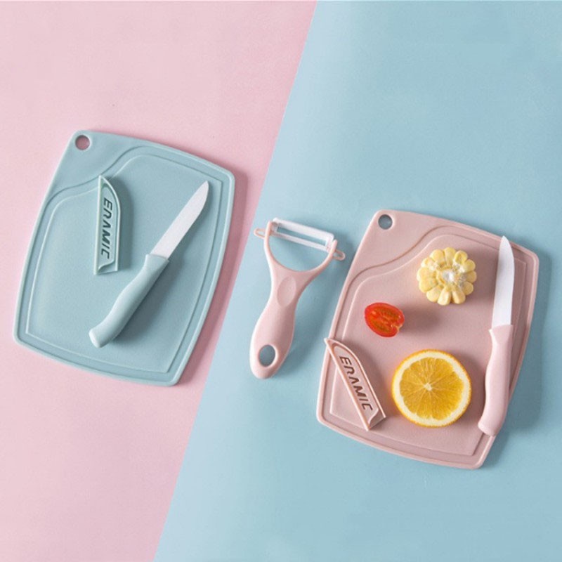 Bộ 3 dao, thớt, nạo vỏ hoa quả dụng cụ cắt gọt nhà bếp tiện lợi