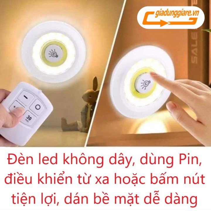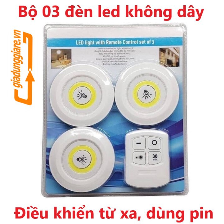 Bộ 3 Đèn LED điều khiển từ xa dùng pin , dán tường không dây với 2 chế độ sáng (Ánh sáng trắng)