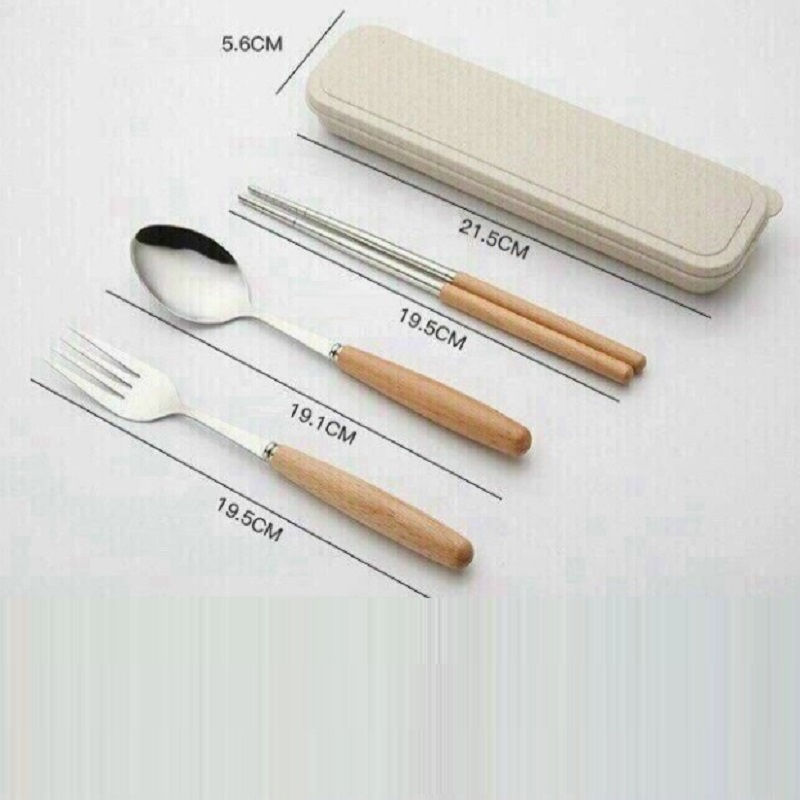 Bộ 3 Dụng Cụ Bàn Ăn Gồm Đũa, Thìa, Dĩa Inox Cán Gỗ Có Hộp Đựng Lúa Mạch* THÔNG TIN SẢN PHẨM: