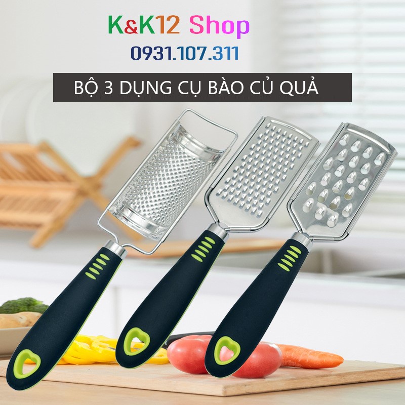 Bộ 3 dụng cụ bào, nghiền củ quả, format tiện lợi cho nhà bếp.