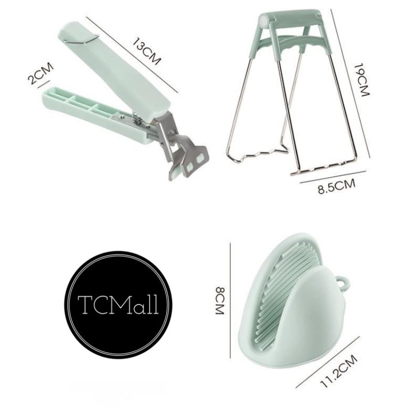 Các chị em nội trợ hằng ngày luôn phải tiếp xúc với nhiệt độ của bếp lửa và thường xuyên phải bưng bê các thiết bị, dụng cụ nấu ăn ra khỏi bếp. Hoặc phải gắp các đồ nóng hằng ngày gây tình trạng phỏng tay, đau rát khi chẳng may bất cẩn làm đổ… Vậy thì gia dụng TCMall sẽ giúp bạn giải quyết vấn đề đó một cách nhanh chóng, dễ dàng bởi bộ dụng cụ gắp đồ nóng chuyên dụng nhé.Bộ dụng cụ nóng chuyên dụng là sản phẩm bao gồm: 1 kẹp gắp đồ, 1 giá bung kẹp đĩa, tô, chén, 2 găng tay silicon.