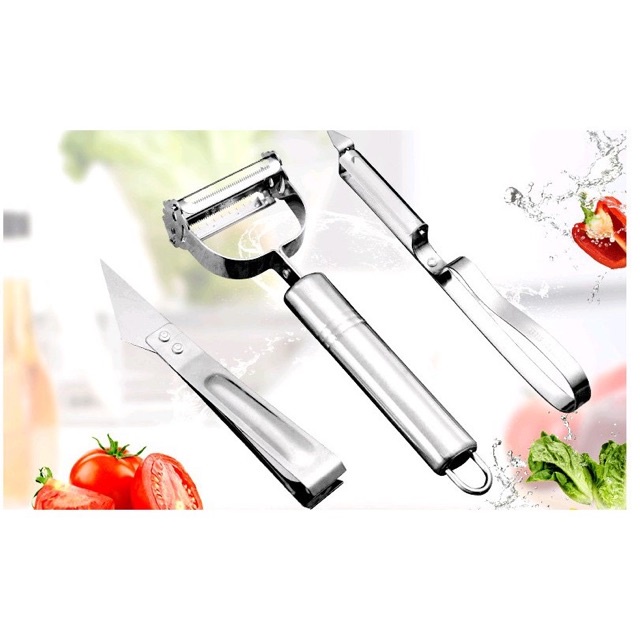 Bộ 3 dụng cụ nạo gọt tỉa hoa quả đa năng bằng thép không gỉ