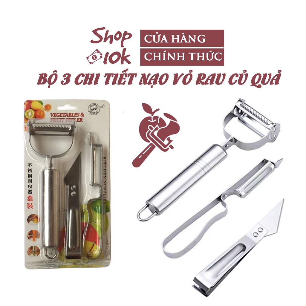 Giới thiệu Bộ 3 Dụng Cụ Nạo Vỏ Củ Quả Đa Năng Chất Liệu Thép Không Gỉ