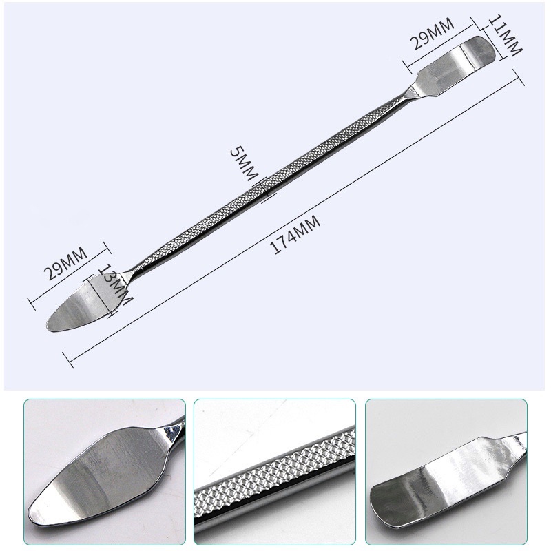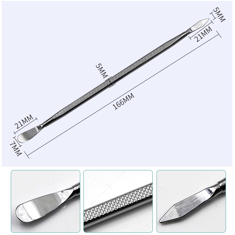 - Công cụ mở điện thoại được đánh bóng toàn bộ mặt ngoài giúp chống gỉ. Hai đầu được làm dẹt để phục vụ quá trình nâng mở điện thoại và máy tính bảng.