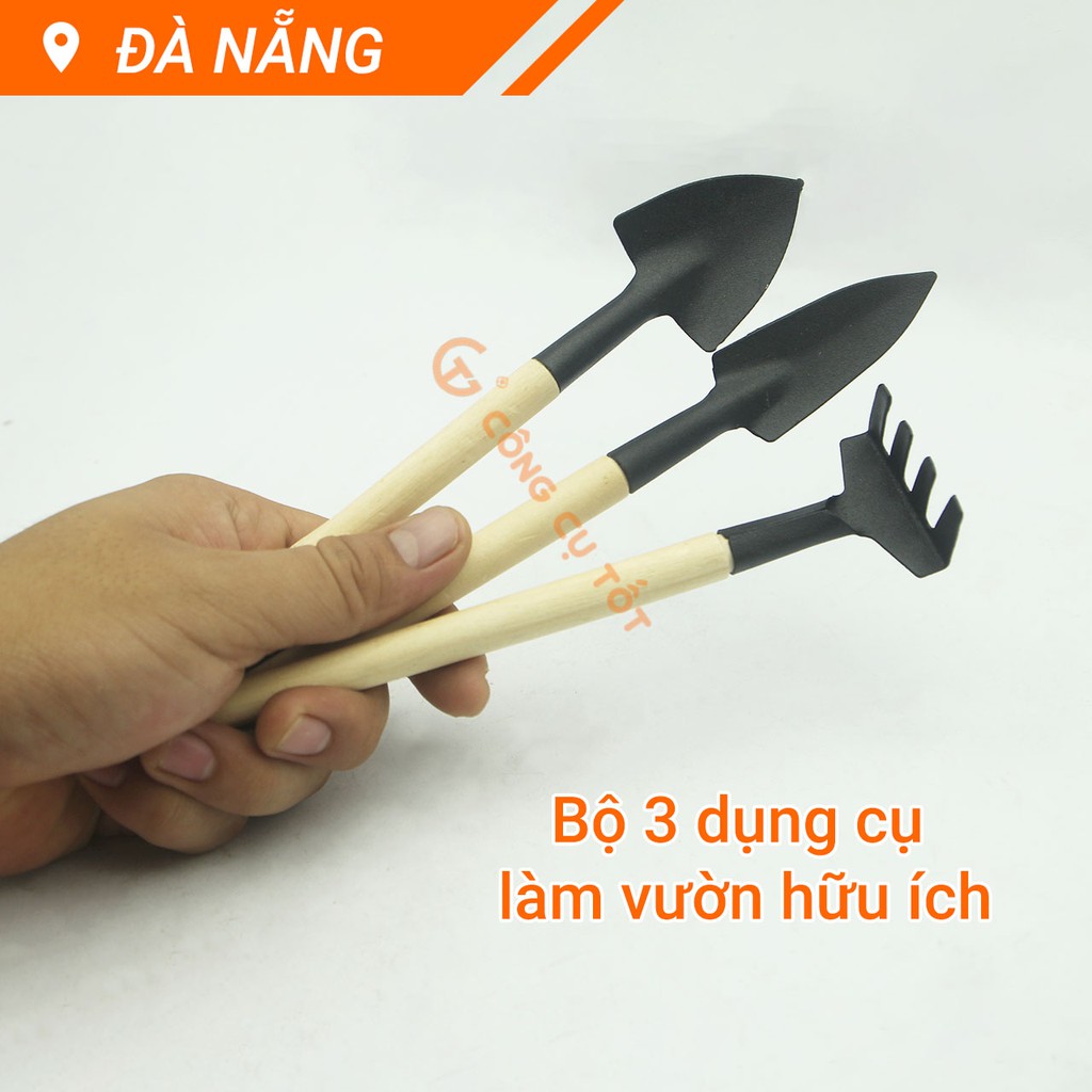 Bộ 3 dụng cụ trồng cây, xẻng làm bườn mini cán gỗ