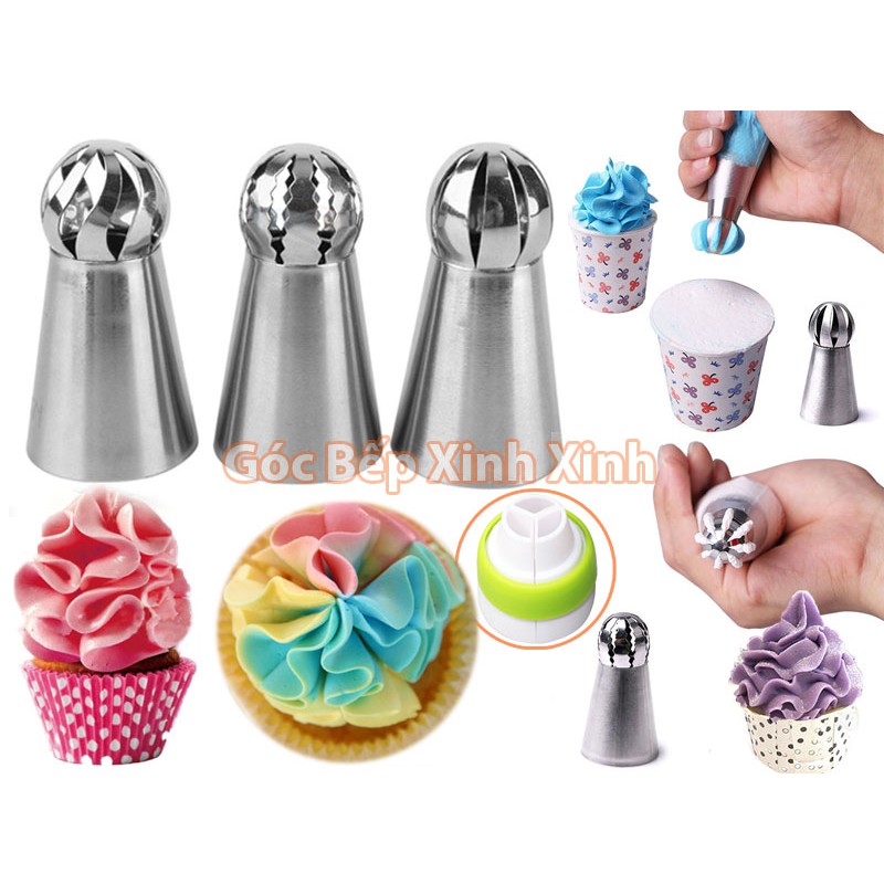 Nhà cửa & Đời sống > Dụng cụ nhà bếp > Dụng cụ nướng & trang trí bánh || Bộ 3 đuôi / đui balltip cầu xoay 3D inox bắt kem cup cake toppingCòn hàng