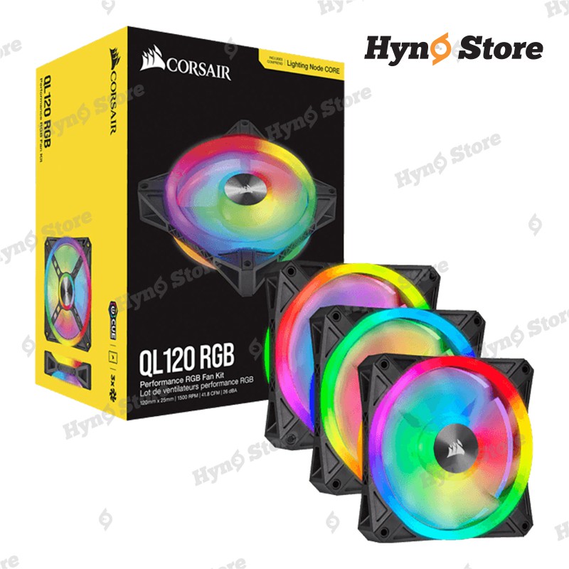 Bộ 3 fan Corair QL120 Black kèm node core Chính hãng Tản nhiệt nước custom Hyno Store
