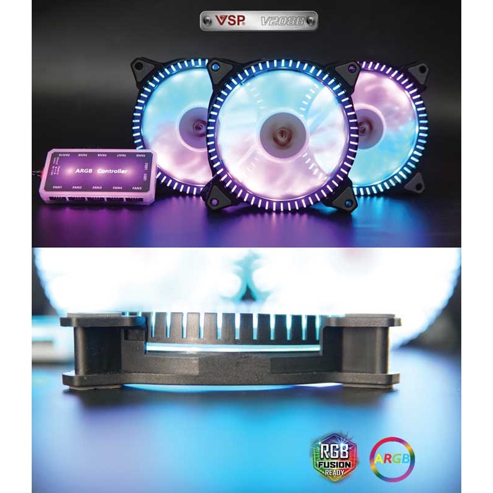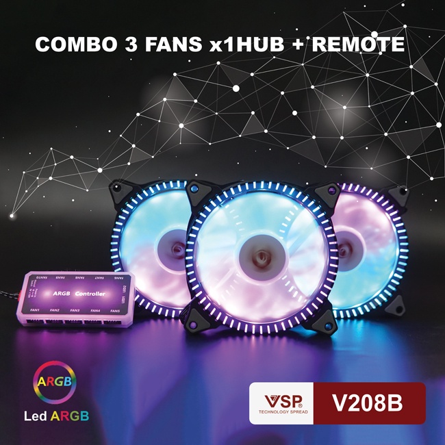 Bộ 3 Fan VSP V208B LED RGB tặng Hub và remote - Hàng chính hãng