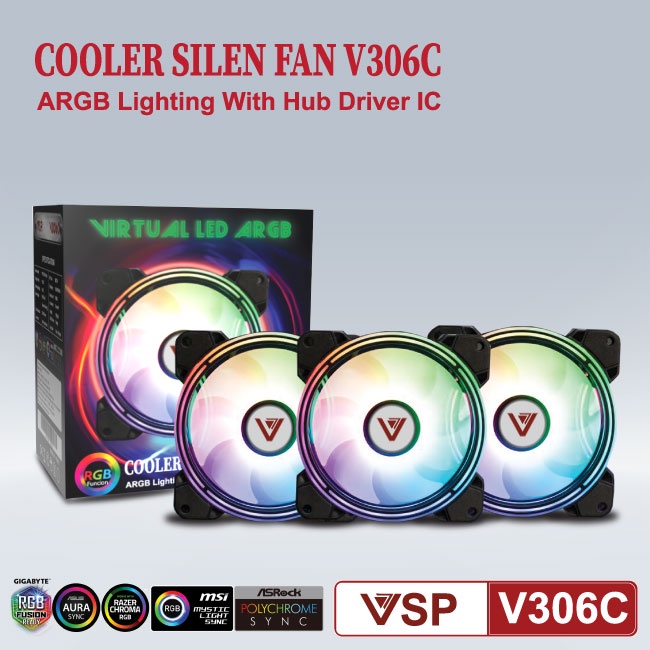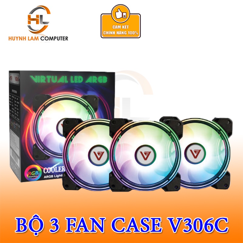 Máy tính & Laptop > Linh Kiện Máy Tính > Quạt và Tản Nhiệt || [Mã 253ELSALE hoàn 7% đơn 300K] Bộ 3 Fan VSP V306C Led RGB kèm hub và remote Cho Case kính cường lựcCòn hàng