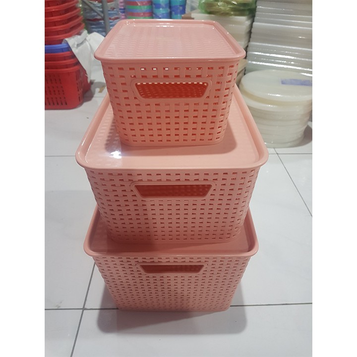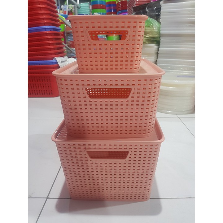 Nhà cửa & Đời sống > Nội thất > Tủ bếp || Bộ 3 Giỏ Đựng Đồ Có Nắp Hàn Quốc Song Long Cỡ Đại L + Cỡ Trung M + Cỡ Bé SCòn hàng