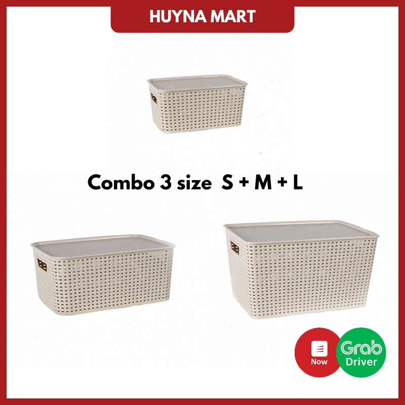 Bộ 3 Giỏ Đựng Đồ Có Nắp Hàn Quốc Song Long Cỡ Đại L + Cỡ Trung M + Cỡ Bé S