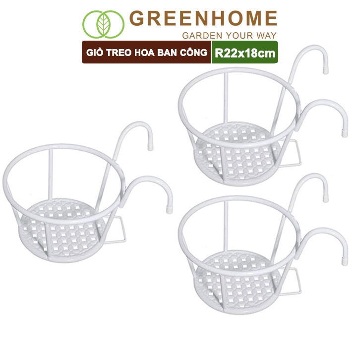 Nhà cửa & Đời sống > Làm vườn > Chậu cây || Bộ 3 Giỏ treo hoa ban công, D22xC18cm, màu trắng, chất liệu sắt sơn tĩnh điện, phù hợp với mọi lan can |GreenhomeCòn hàng
