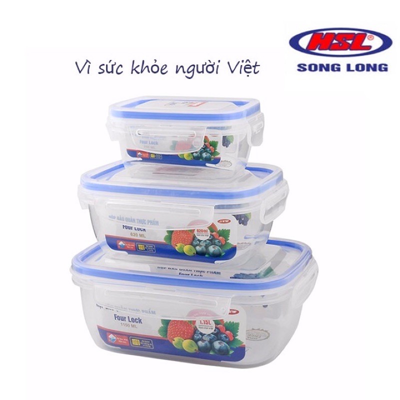 🌸 Bộ 3 hộp nhựa bảo quản thực phẩm Song Long🔸 Có khóa 4 cạnh, dùng được trong lò vi sóng.