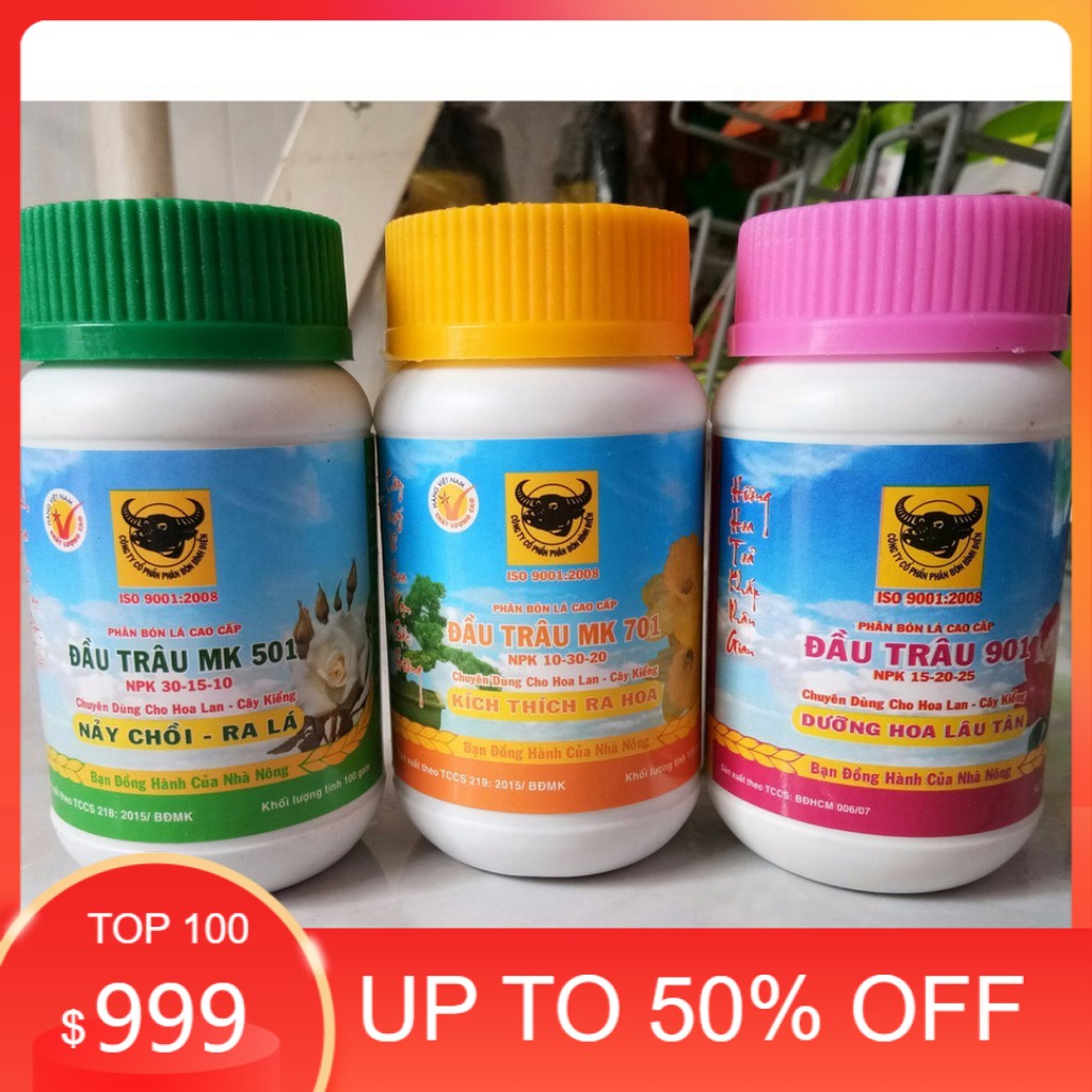 Nhà cửa & Đời sống > Làm vườn > Phân bón || Bộ 3 Hũ 100g NPK Đầu Trâu MK 501 (30-15-10)-701 (10-30-20)- 901 (15-20-25)- Nảy Chồi-Kích Thích Ra Hoa- Dưỡng Hoa LâuCòn hàng