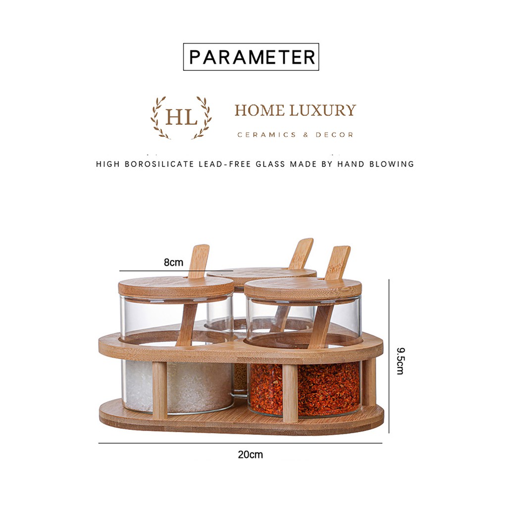 Bộ 3 hũ đựng gia vị thủy tinh kèm khay gỗ tre3 hủ gia vị làm bằng thủy tinh cao cấp