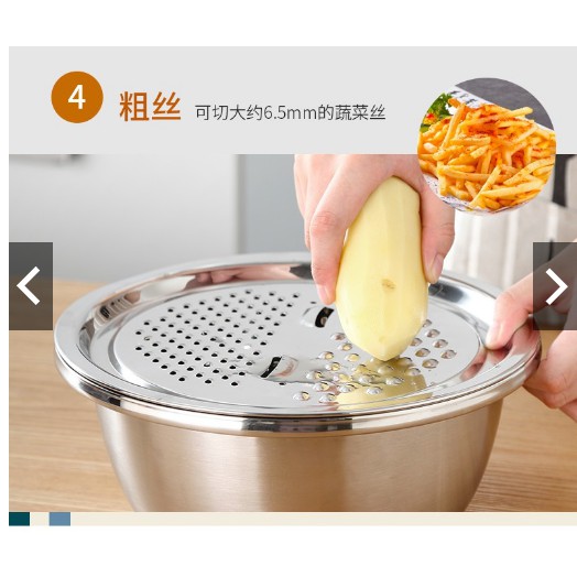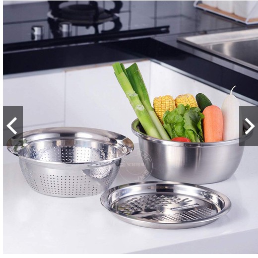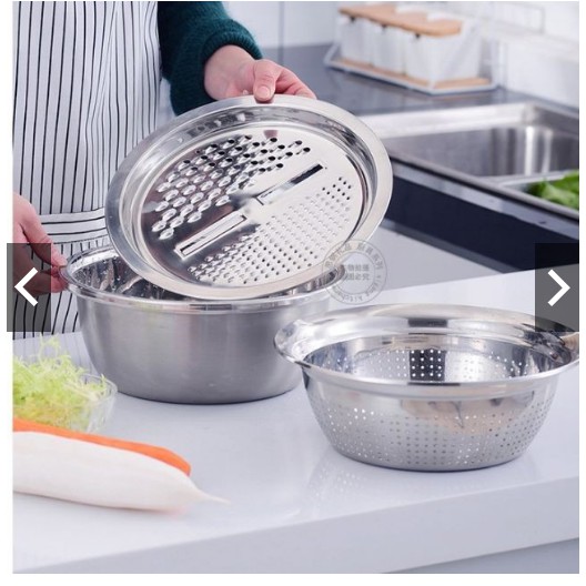 Nhà cửa & Đời sống > Dụng cụ nhà bếp > Bàn nạo, dụng cụ bào, cắt || Bộ 3 inox bào nạo rau củ kiêm rổ và chậu Inox Cao cấp đa năngCòn hàng
