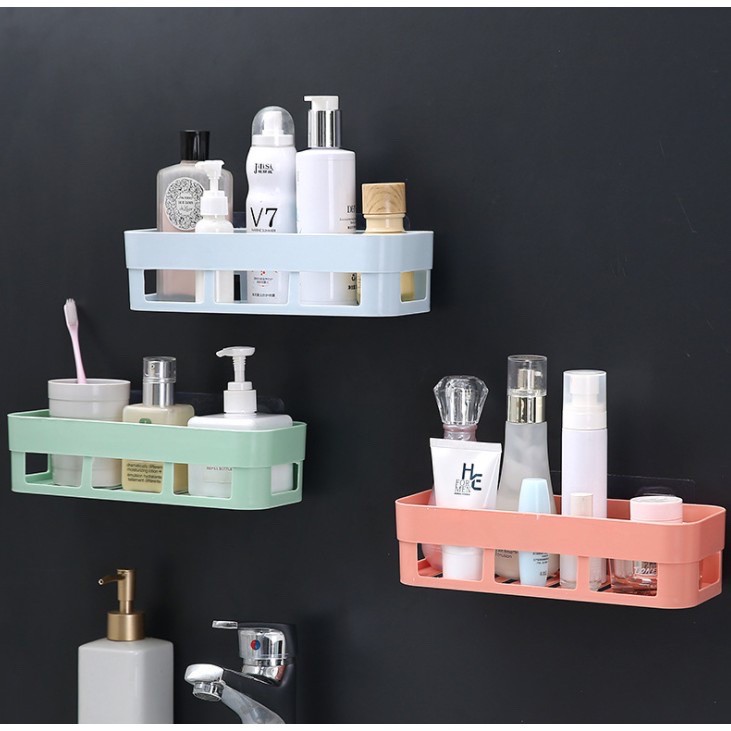 Bộ 3 Kệ dán tường nhà tắm, nhà bếp hình chữ nhật** MÀU NGẪU NHIÊN
