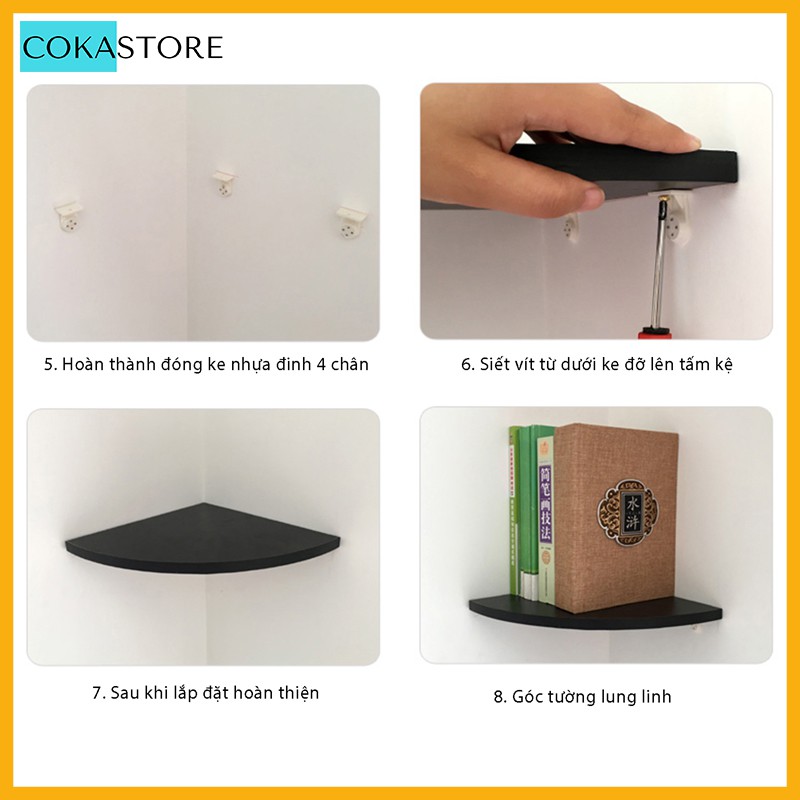 Bộ 3 Kệ Góc Trang Trí Treo Tường Hiện Đại Không Cần Khoan Hình Cung Tròn Thương Hiệu SIB DECOR,Tặng Kèm Phụ Kiện (KT111)
