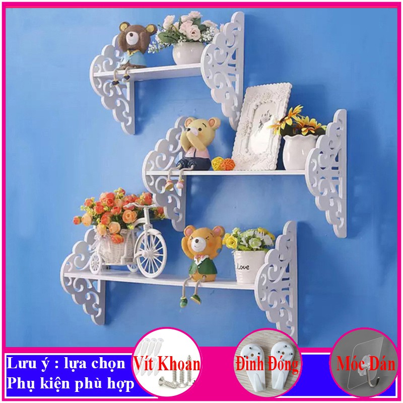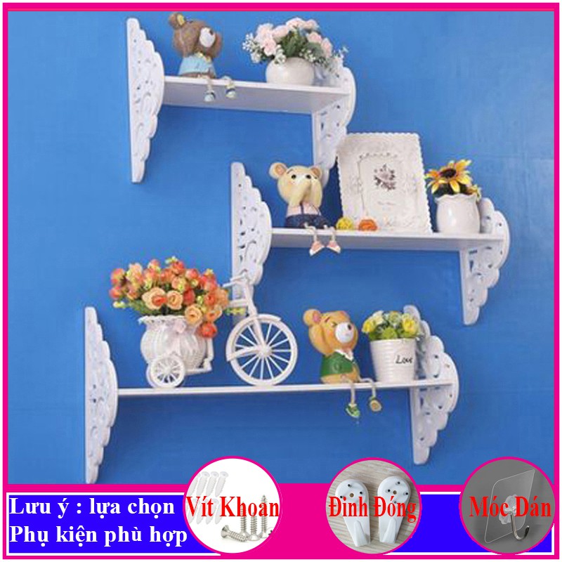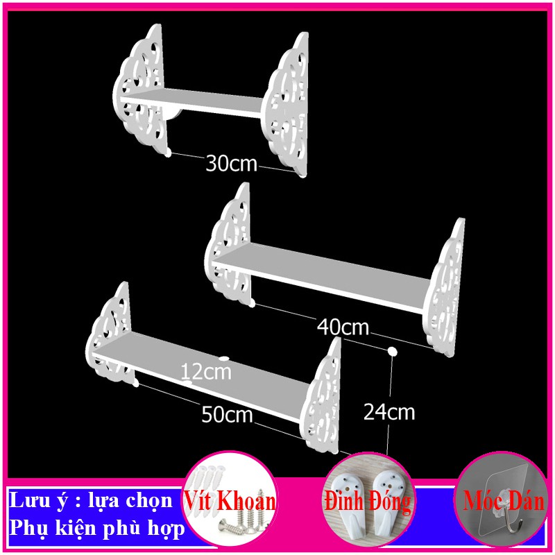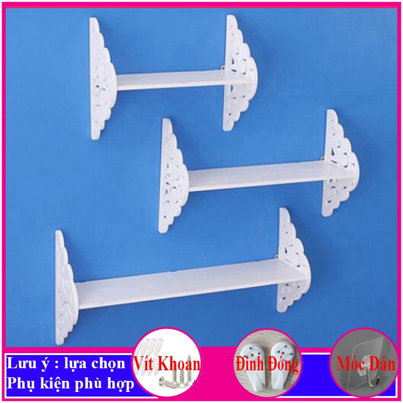 Bộ 3 Kệ treo tường trang trí không cần khoan, chất liệu gỗ nhựa cao cấp màu trắng, decor không gian sống - a17
