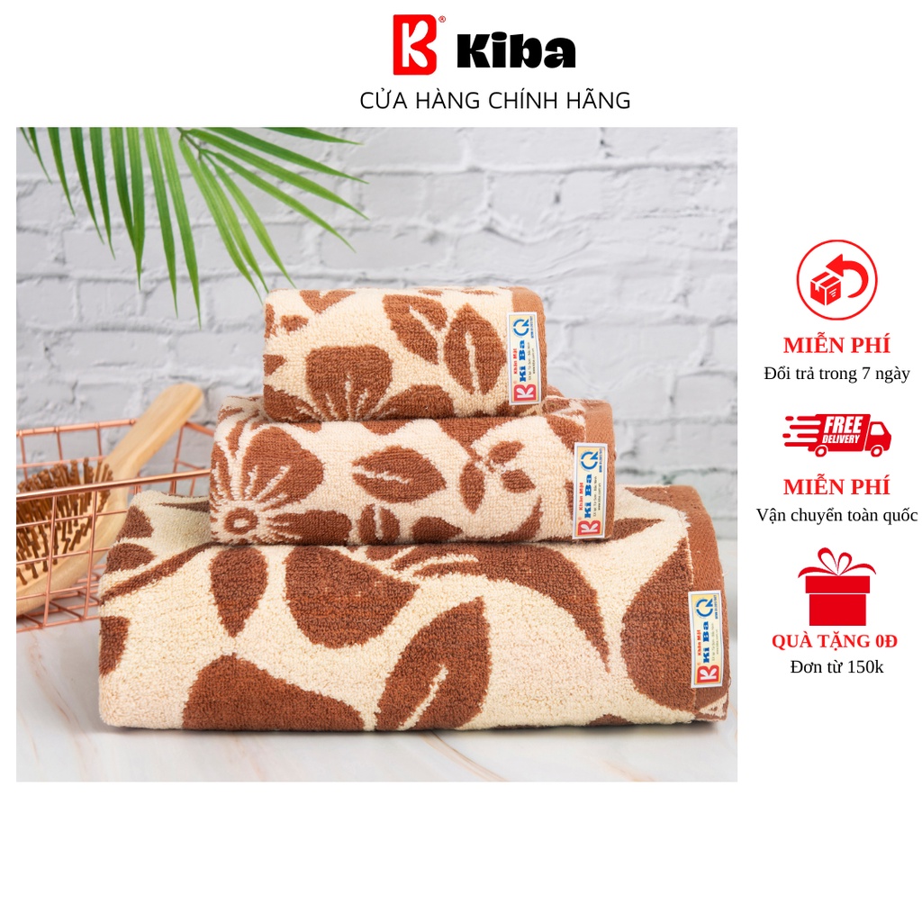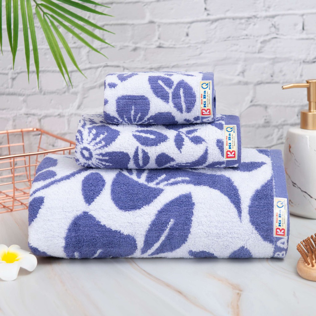 Bộ 3 Khăn Hoa Tắm Gội Mặt, Khăn Tắm Sz 50x100cm KIBA Chất Cotton Hữu Cơ, Êm, Mềm, Dày Dặn, Thấm Hút Tốt, An Toàn