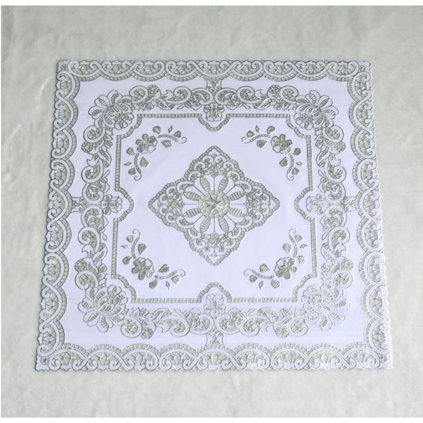 Thông tin chi tiết sản phẩm:Tên sản phẩm: Bộ 3 Khăn Trải Bàn Nhũ Vàng-Trắng Sang Trọng 50x50cm