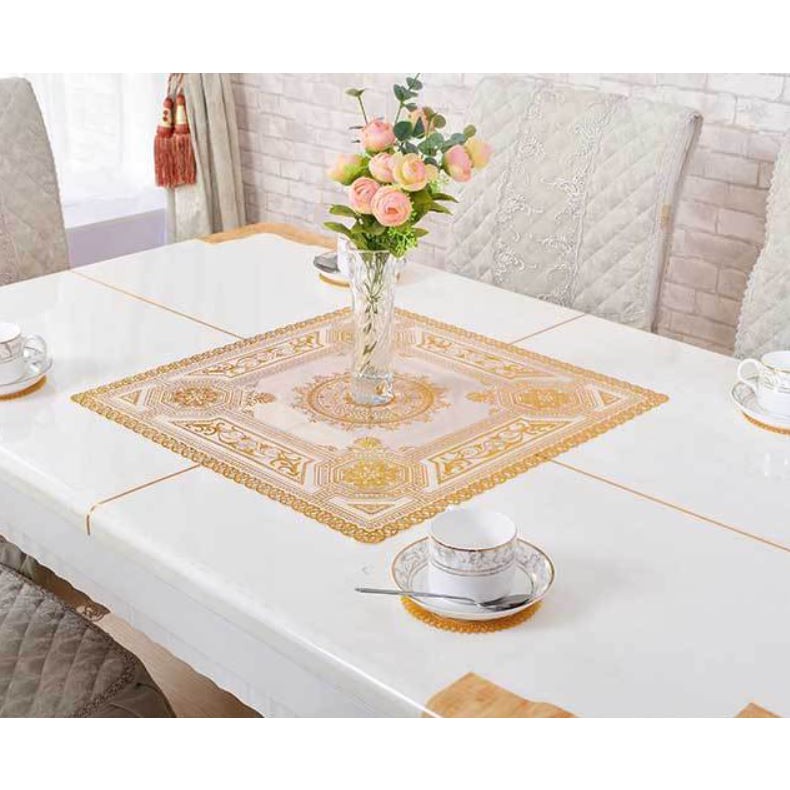 Giới thiệu Bộ 3 Khăn Trải Bàn Ăn Nhũ Vàng-Trắng Sang Trọng ( 50x50cm )