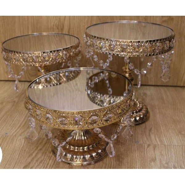 Bộ 3 Khay Bánh Mặt Tráng Gương Đính Đá Sang Trọng