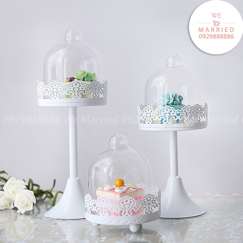 Bộ 3 khay cupcake trắng (có nắp kính)