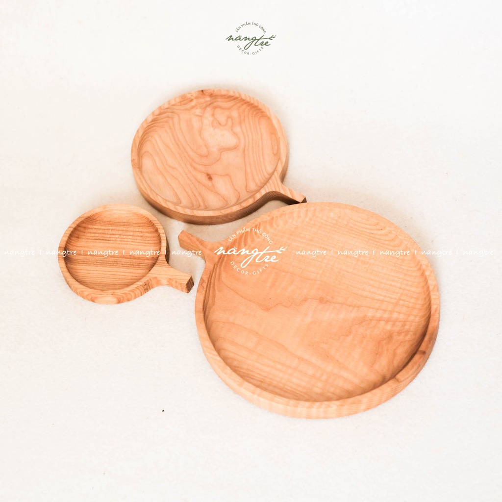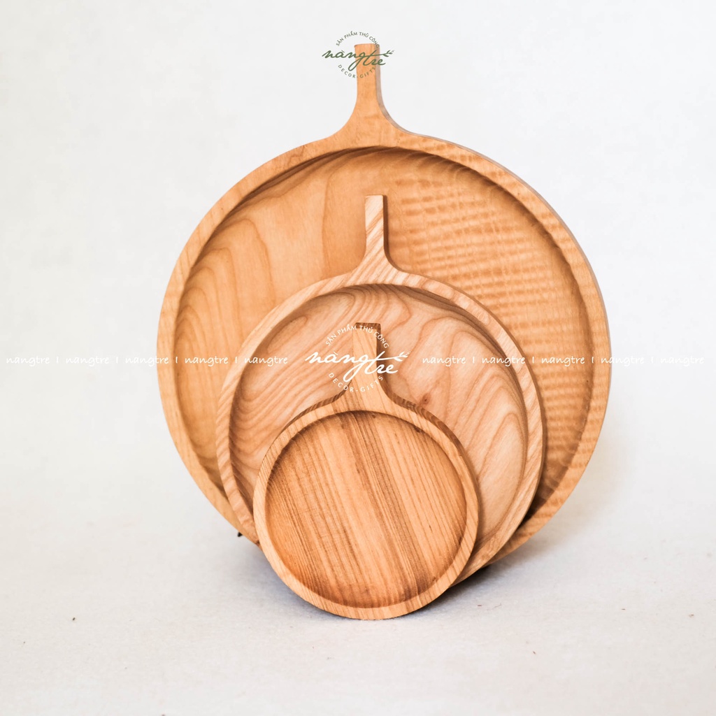 Bộ 3 Khay gỗ tròn tay cầm - Trang trí - Khay gỗ tần bì - woodentray