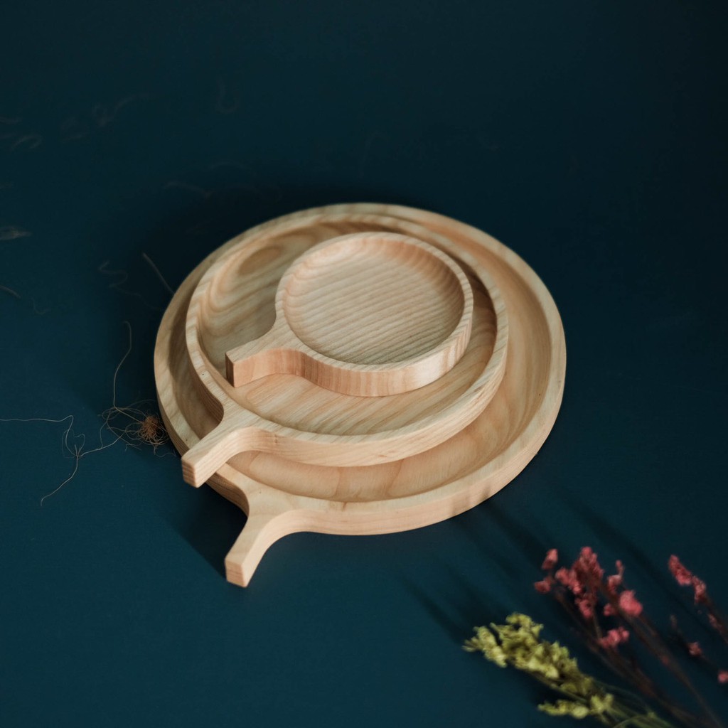 Nhà cửa & Đời sống > Bộ đồ bàn ăn > Dĩa || Bộ 3 Khay gỗ tròn tay cầm - Trang trí - Khay gỗ tần bì - woodentrayCòn hàng