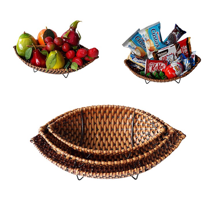 Giới thiệu Bộ 3 khay mây nhựa hình thuyền