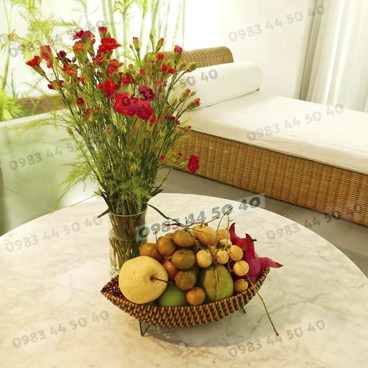 ☆ SP dùng để trái cây, bánh kẹo,hàng trưng bày...+ Chất Liệu: Khung sắt sơn tĩnh điện đan dây mây nhựa