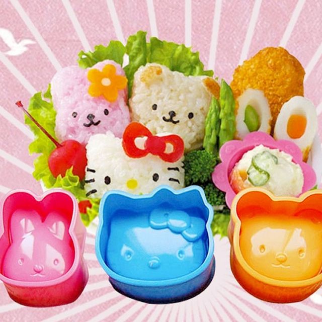 Bé nhà bạn hay chán ăn ? Bạn luôn phải nghĩ ra những món ăn mới cho bé ? Tạo sự hấp dẫn cho bữa cơm của bé, kích thích con mình ăn ngon miệng hơn , tôi sẽ giúp bạn làm điều đó một cách dễ dàng với bộ ép cơm 3 hình : hello kitty, gấu và thỏ vô cùng ngộ nghĩnh và dễ thươngKích thước 3 hình :