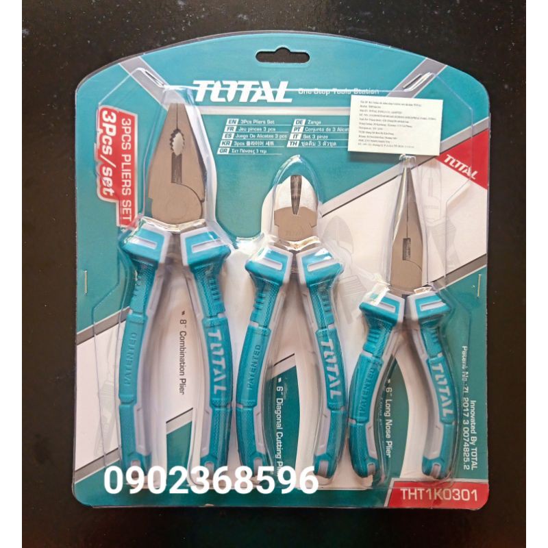 Giới thiệu Bộ 3 kìm cắt, kềm răng và kềm mỏ dài TOTAL THT1K0301