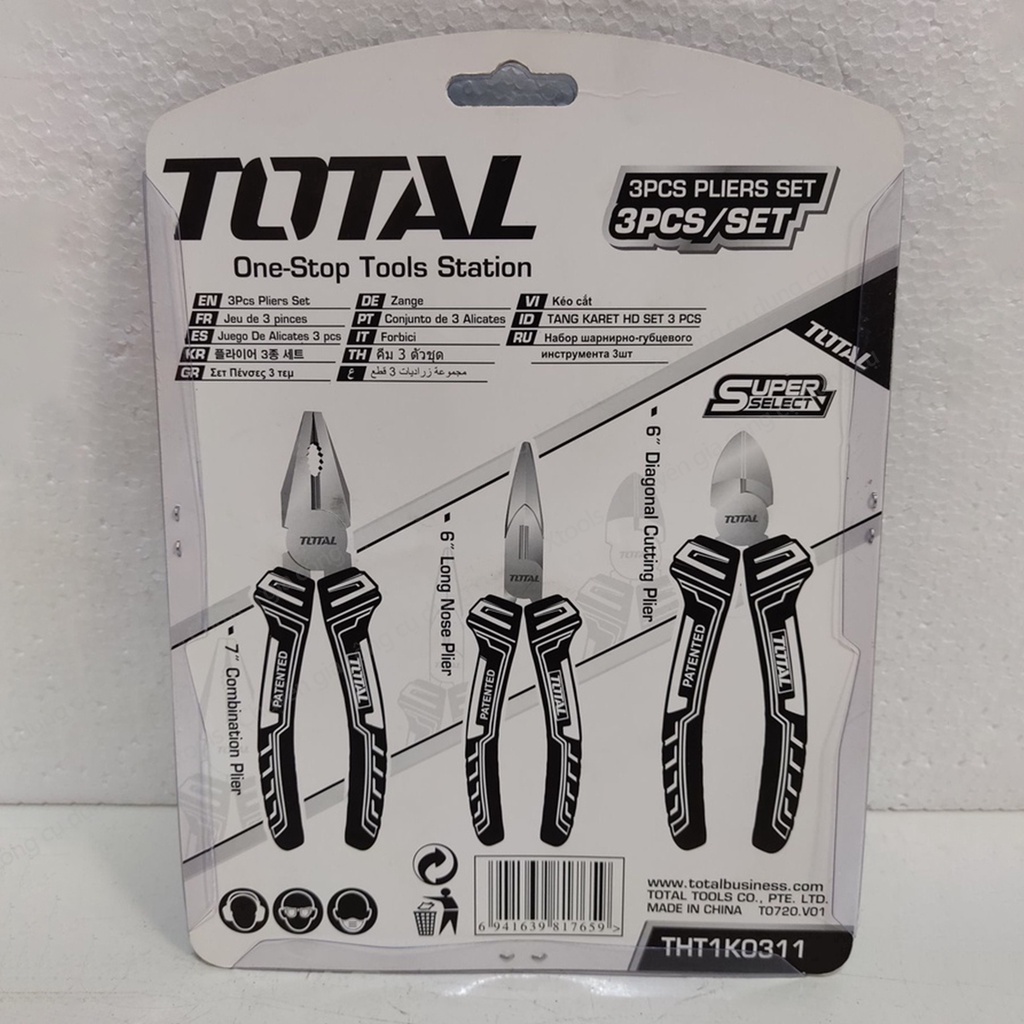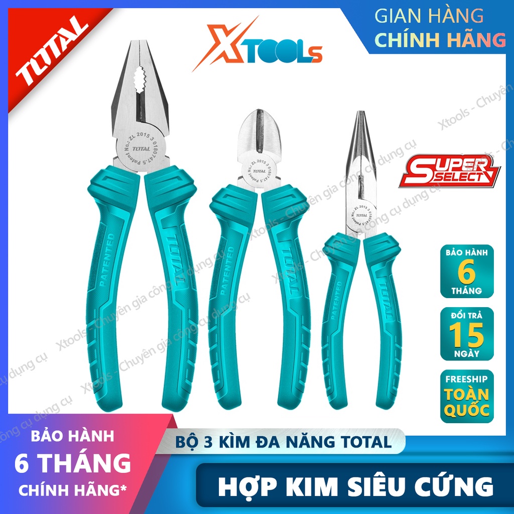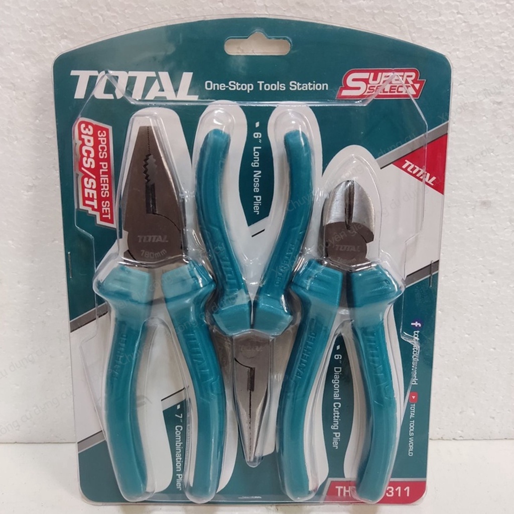 ✅Bộ 3 kìm đa năng TOTAL với đẩy đủ chức năng : cắt, kẹp, nhổ định, tuốt dây, uốn...