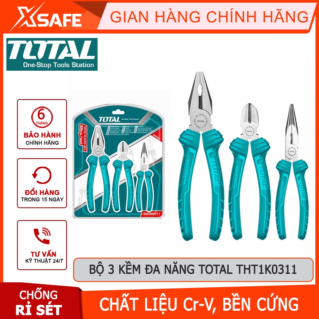 Bộ 3 kìm điện, kìm cắt, kìm mũi nhọn TOTAL THT1K0311Được nhập khẩu và phân phối chính hãng bởi Bảo hộ Xsafe