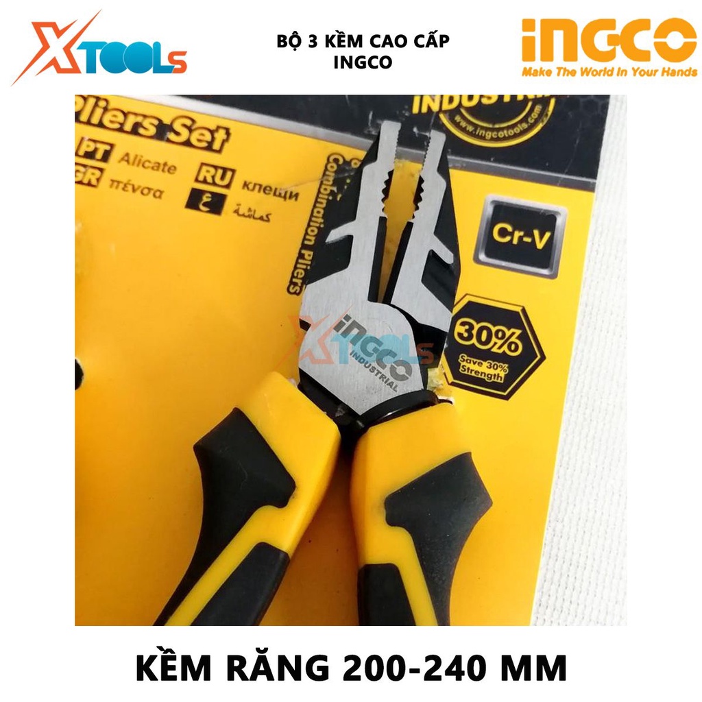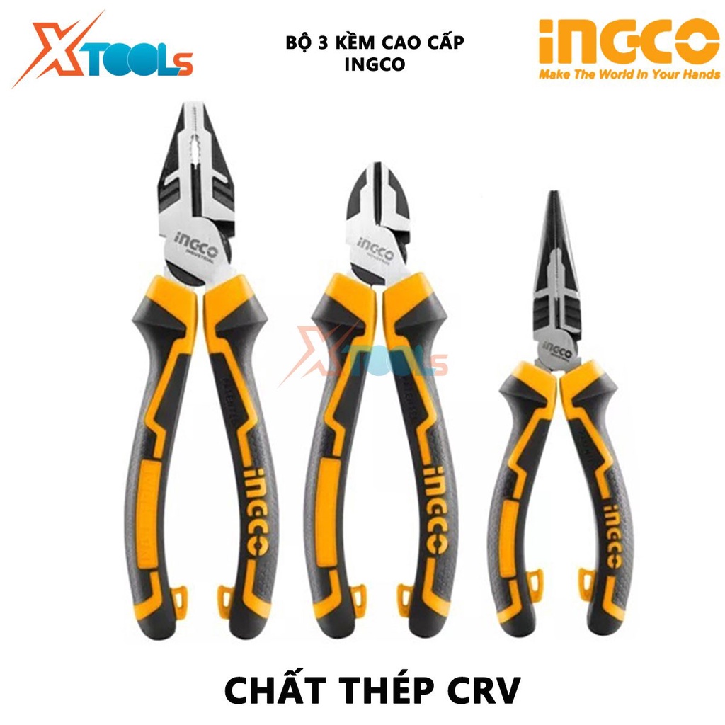 Bộ 3 kìm răng, cắt và nhọn cao cấp INGCO | bộ kềm đa năng Chất liệu bằng thép CR-V Tay cầm 2 màu - 20/T cắt, kẹp, tuốt c