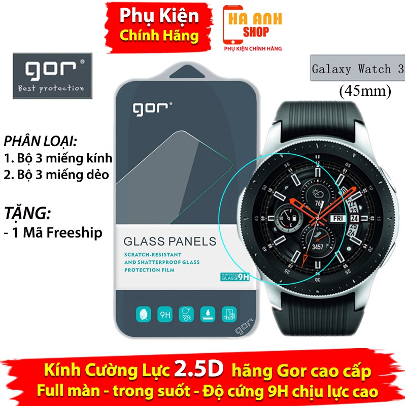 Điện Thoại & Phụ Kiện > Phụ kiện > Phụ kiện cho đồng hồ thông minh || Bộ 3 kính cường lực Galaxy Watch 3(45mm) Full màn hãng Gor cao cấpCòn hàng