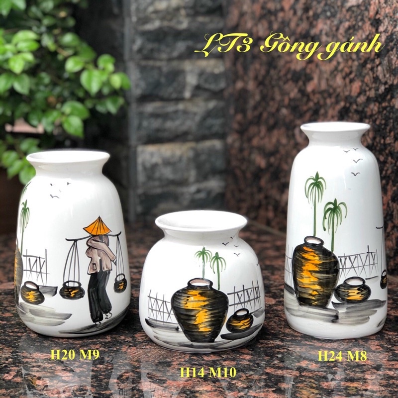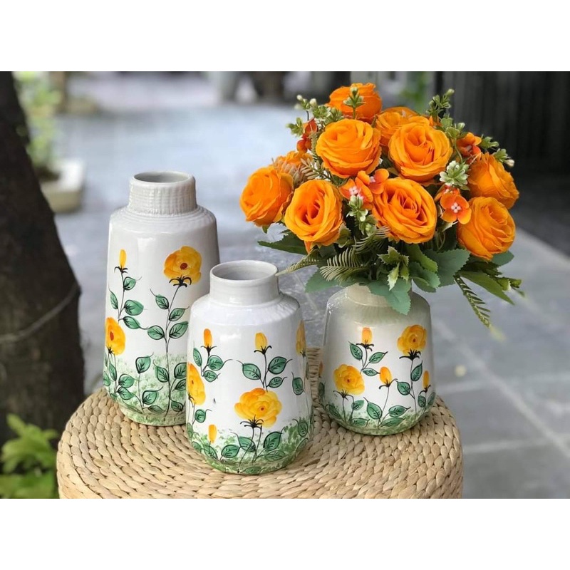 Bộ 3 lọ cắm hoa gốm Bát Tràng decor