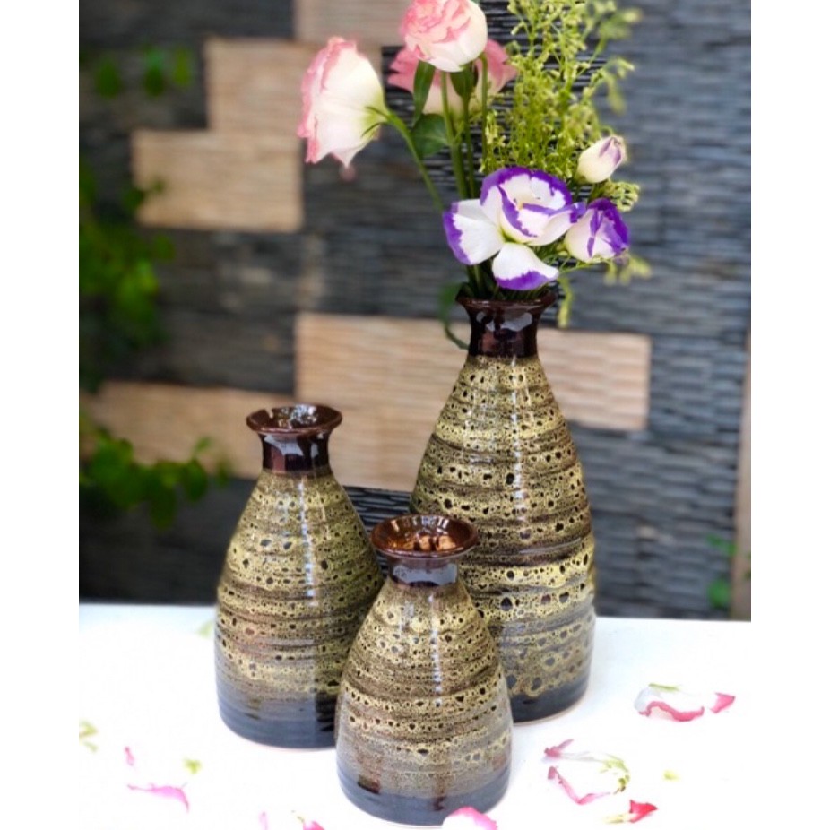 Nhà cửa & Đời sống > Trang trí nhà cửa > Bình trang trí || Bộ 3 lọ hoa hoả biến Bát TràngCòn hàng
