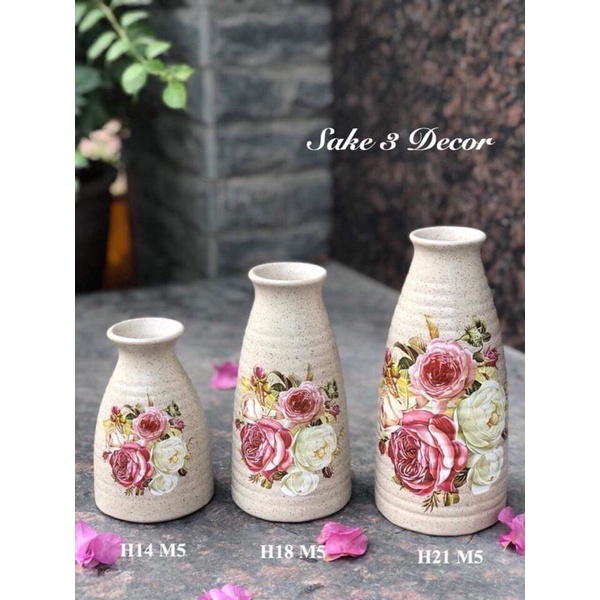 Bộ 3 lọ hoa sứ sake gốm Bát Tràng