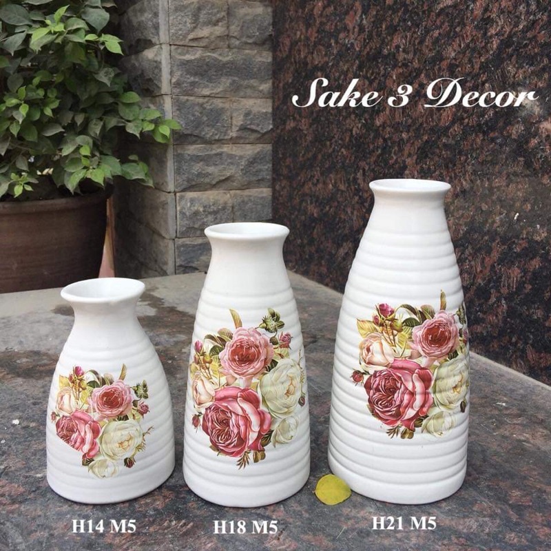 Bộ 3 lọ hoa sứ sake gốm Bát Tràng