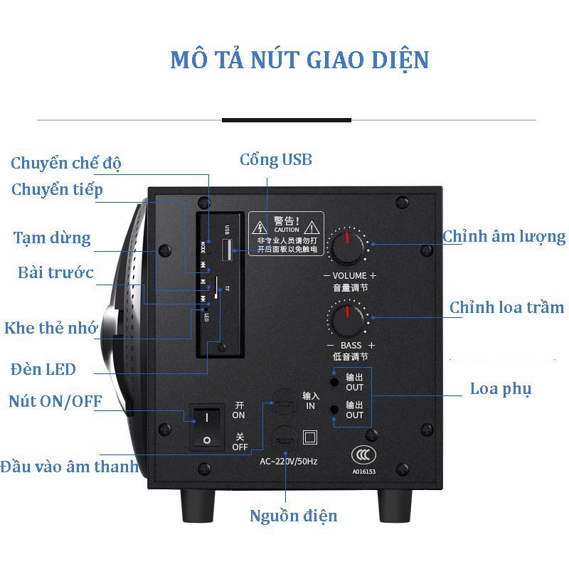 Chức năng: Hỗ trợ U-Disk / Thẻ TF / AUX-in