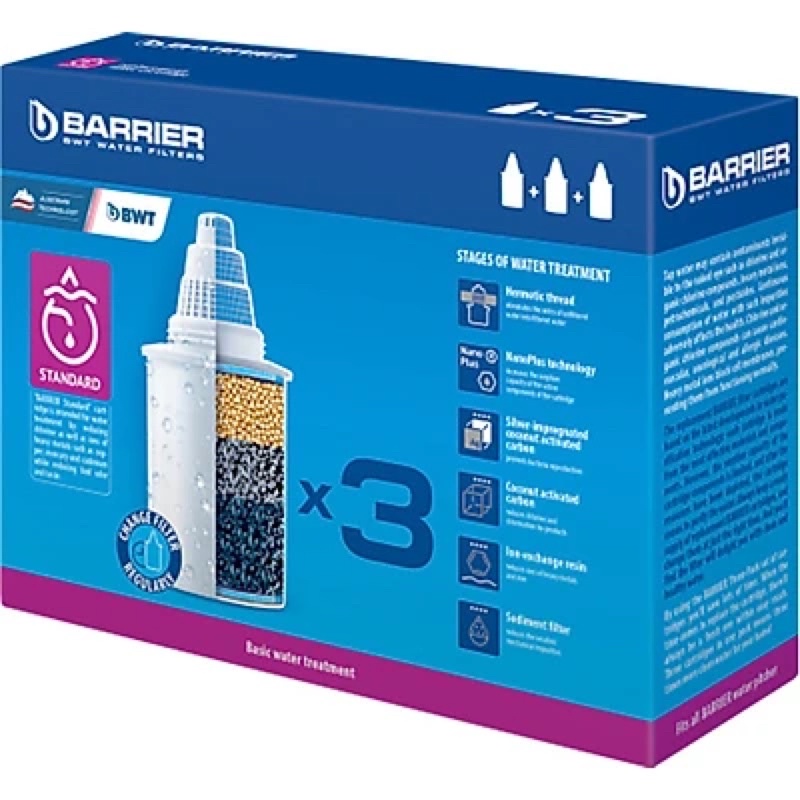 Vỏ hộp không đẹpBộ 3 Lõi Lọc Nước Máy Tiêu Chuẩn Barrier