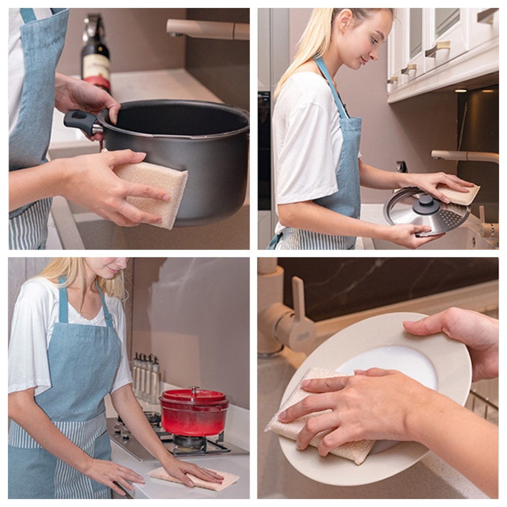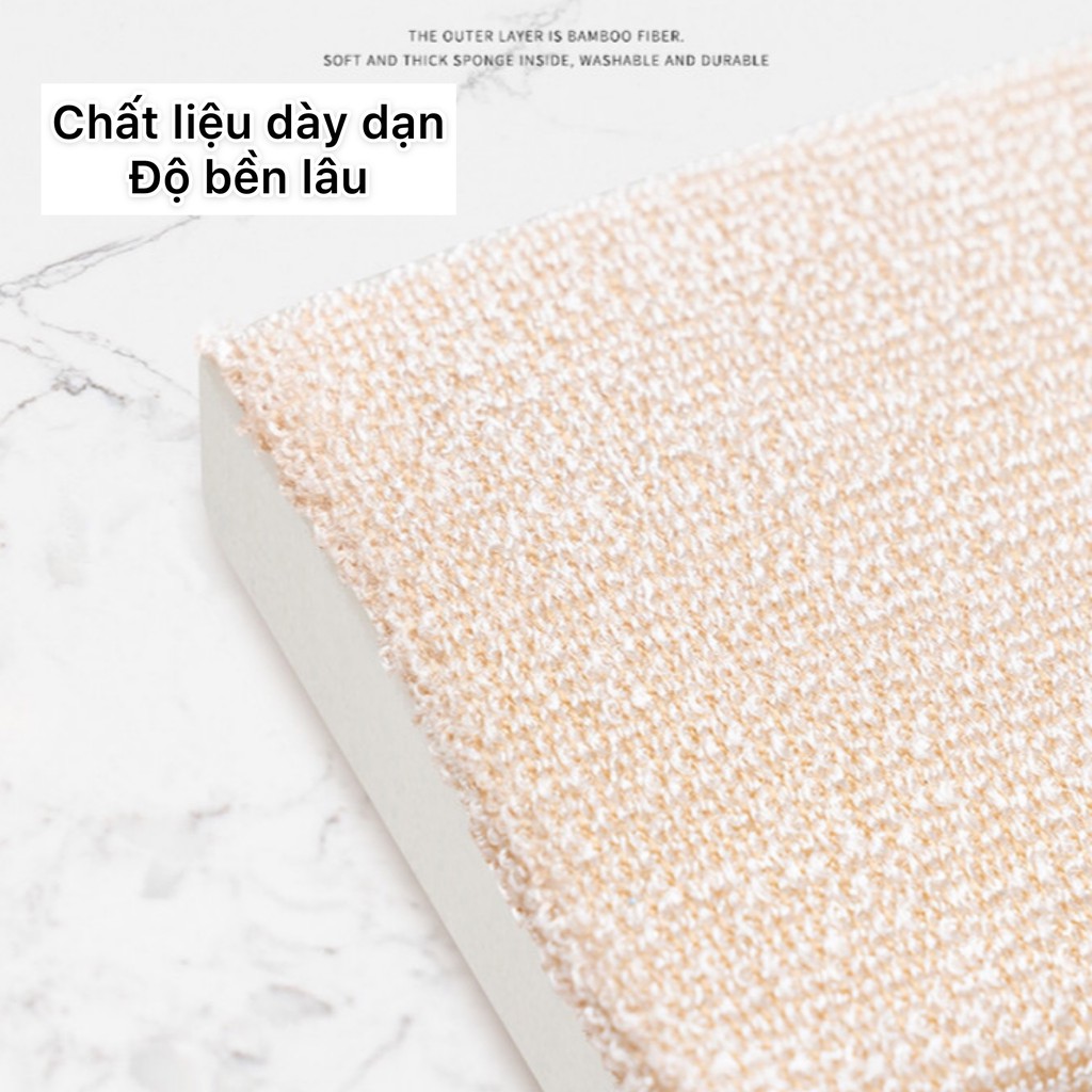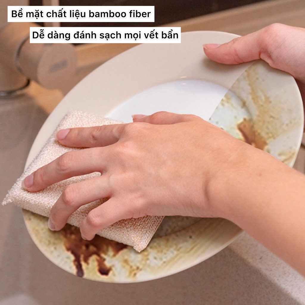 Chất liệu : bamboo fiberLớp bọc miếng mút chất liệu bamboo fiber đảm bảo an toàn vệ sinh, dễ dàng đánh sạch mọi vết bẩn bám trên bề mặt bát đĩa