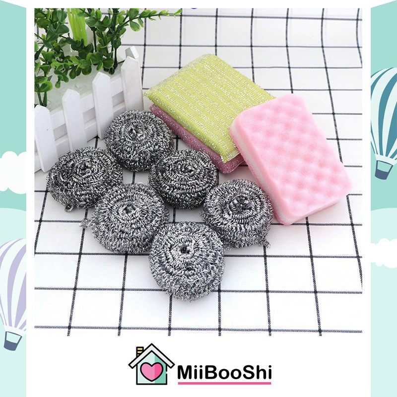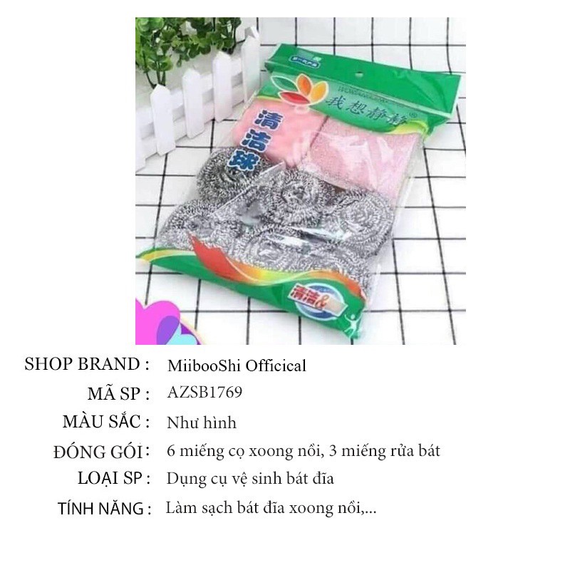 3 miếng rửa bát bọt biển hàn quốc + 6 miếng cọ rửa xoong nồi inox đa năng tiện lợi MiibooShi SB1769Gồm 6 cọ inox và 3 mút rửa tạo bọt 👈
