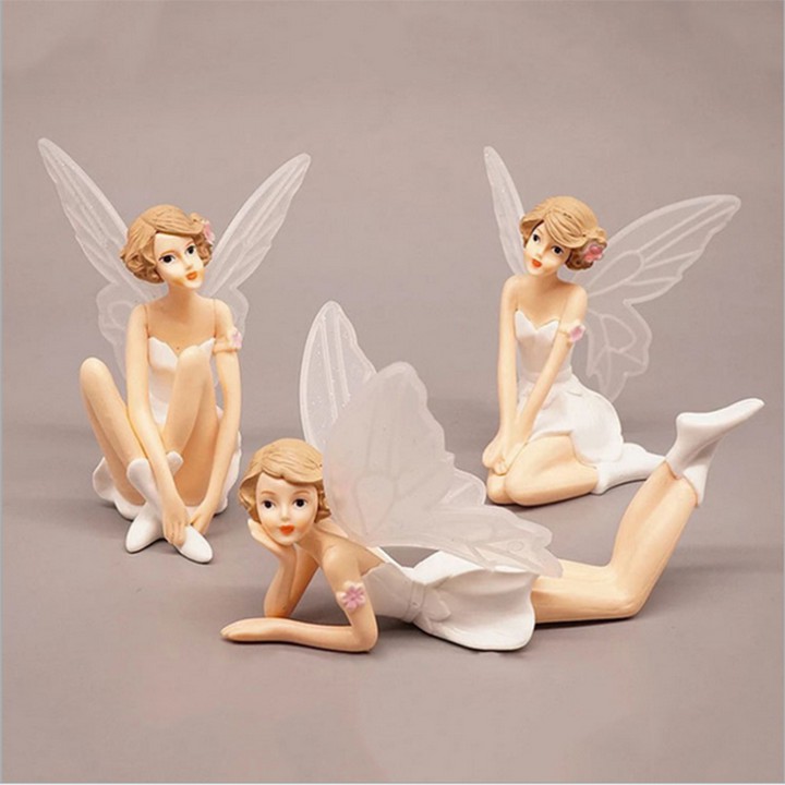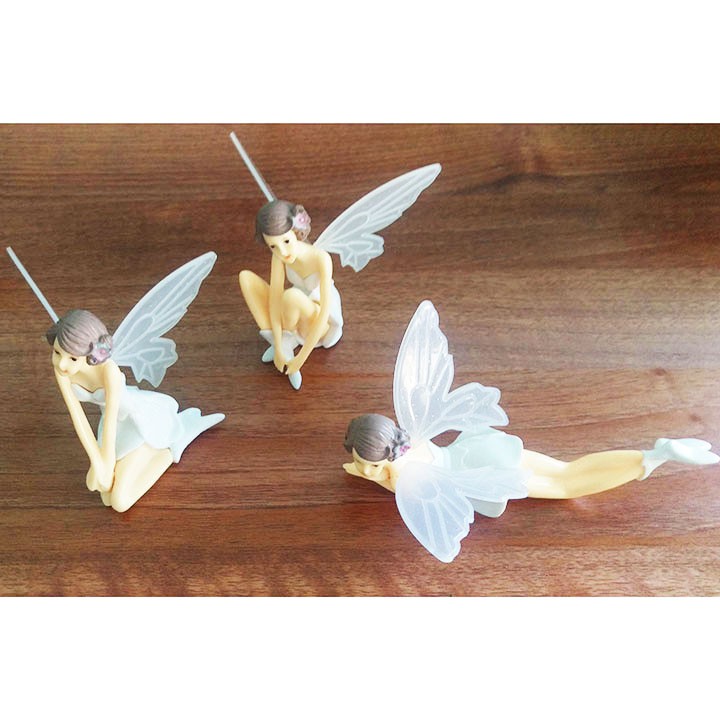 Bộ 3 mô hình cô tiên cánh trắng trang trí bánh, nữ thần cánh trắng